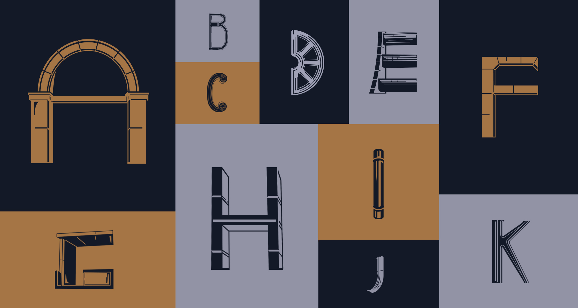 Alfabeto desenvolvido e desenhado com base numa recolha fotográfica de pormenores arquitectónicos e urbanos. Todos os elementos foram posteriormente desenhados de forma manual.