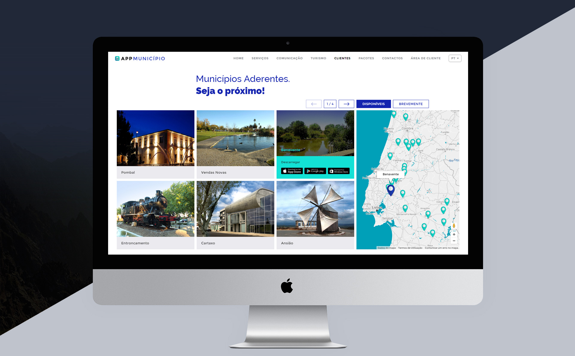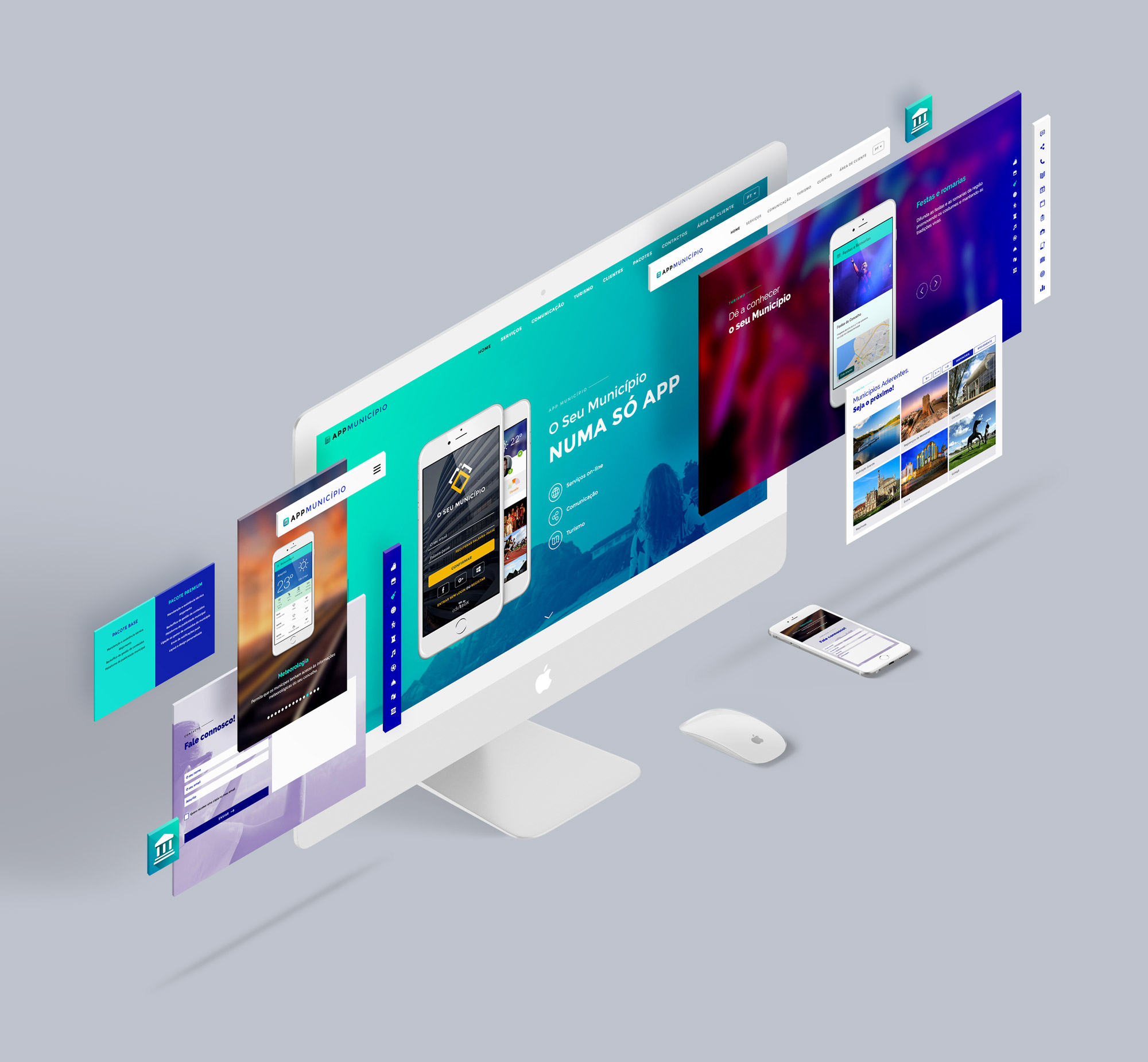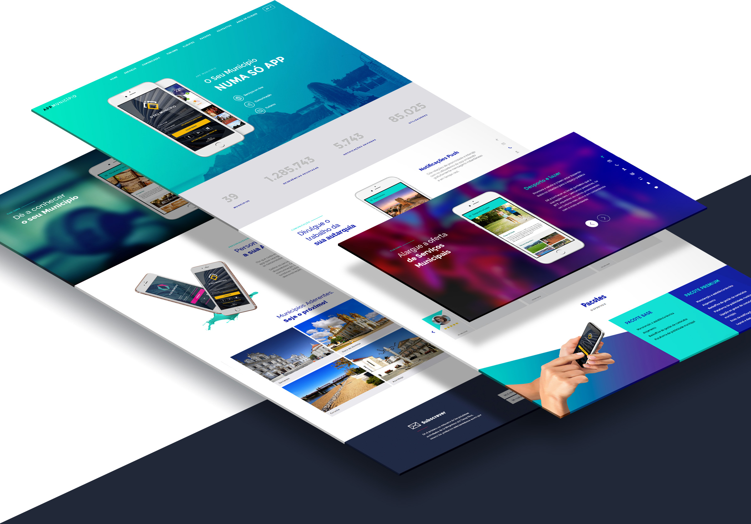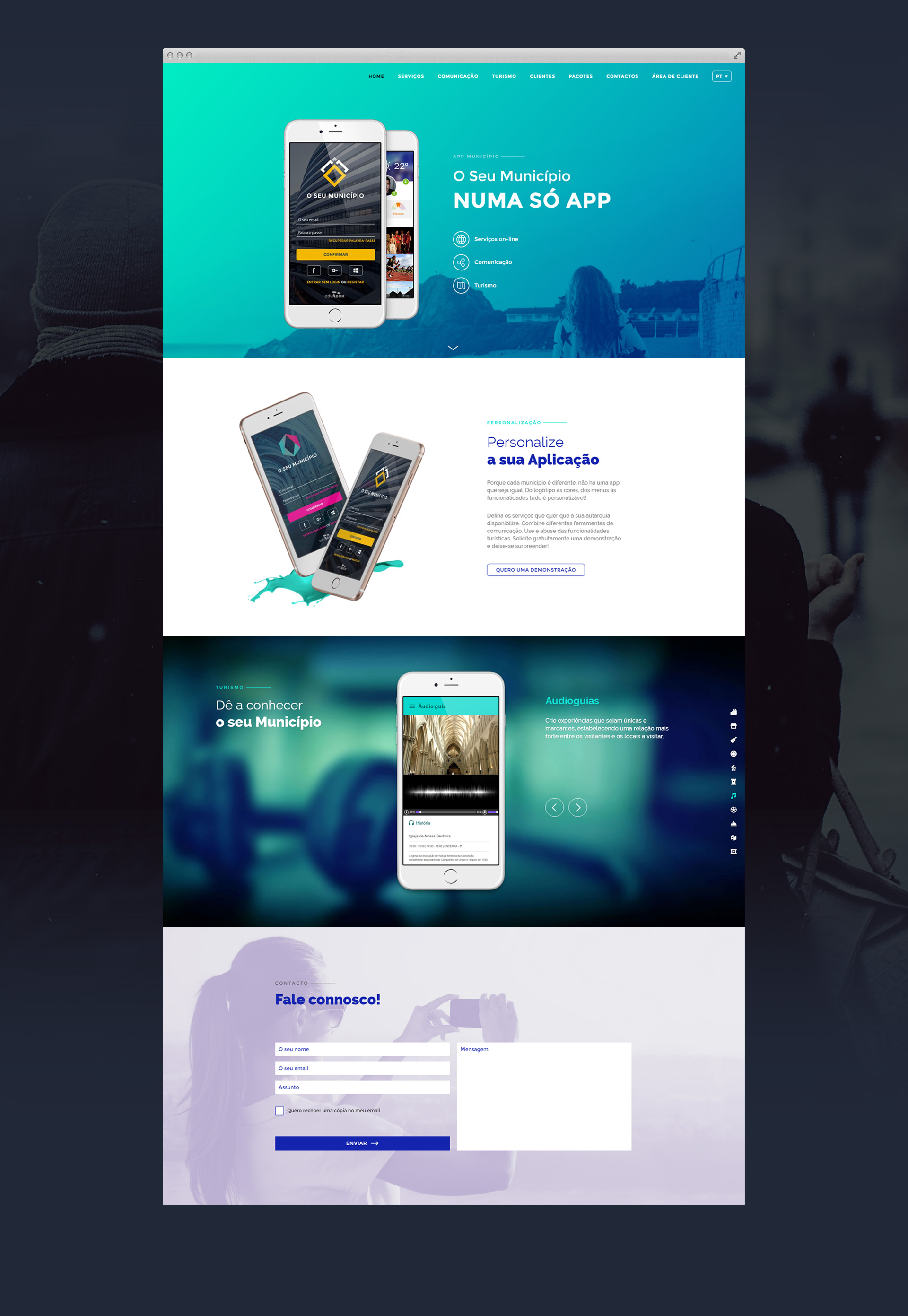 Design do website / Landing Page da aplicação mobile “App Município”. Esta aplicação pretende dar a conhecer o que de melhor a sua cidade tem para oferecer e reforçar a comunicação com cidadãos e turistas, disponibilizando diversos serviços de forma rápida e cómoda.