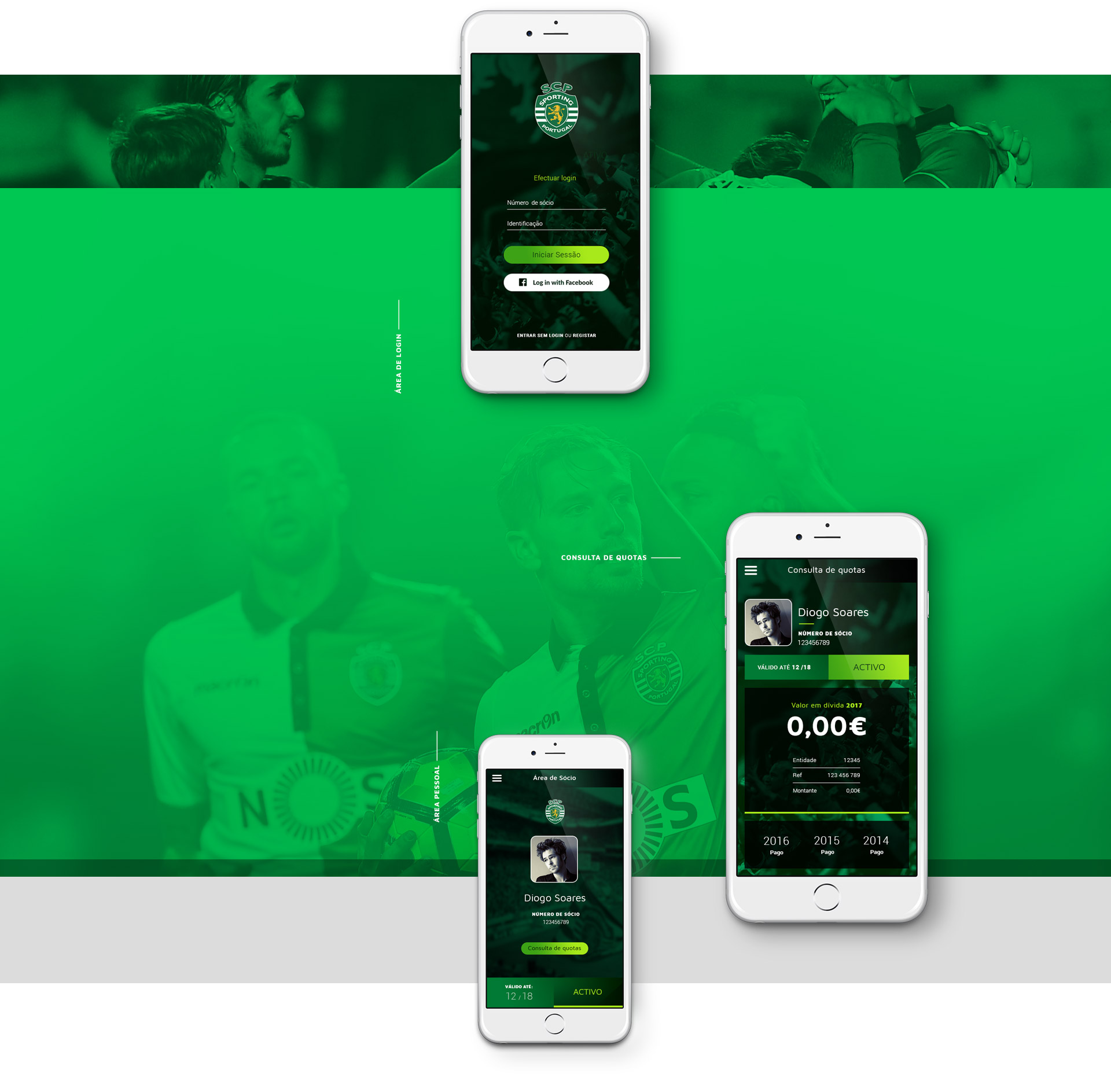 Proposta de design para App Sporting Clube de Portugal. Esta aplicação destina-se à utilização por parte de sócios, adeptos e simpatizantes do clube. Através do seu interface bastante intuitivo, poderão facilmente realizar-se operações como o pagamento e consulta de cotas e ter acesso a canais de informação, divulgação e comunicação relativos às várias modalidades desportivas do clube.