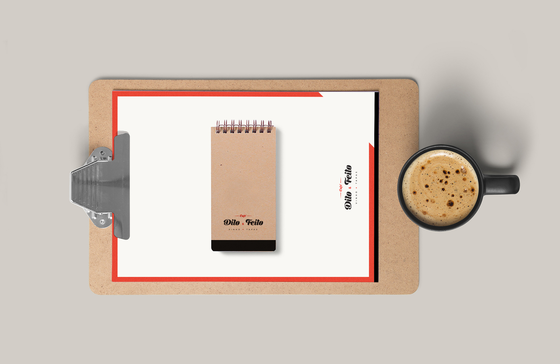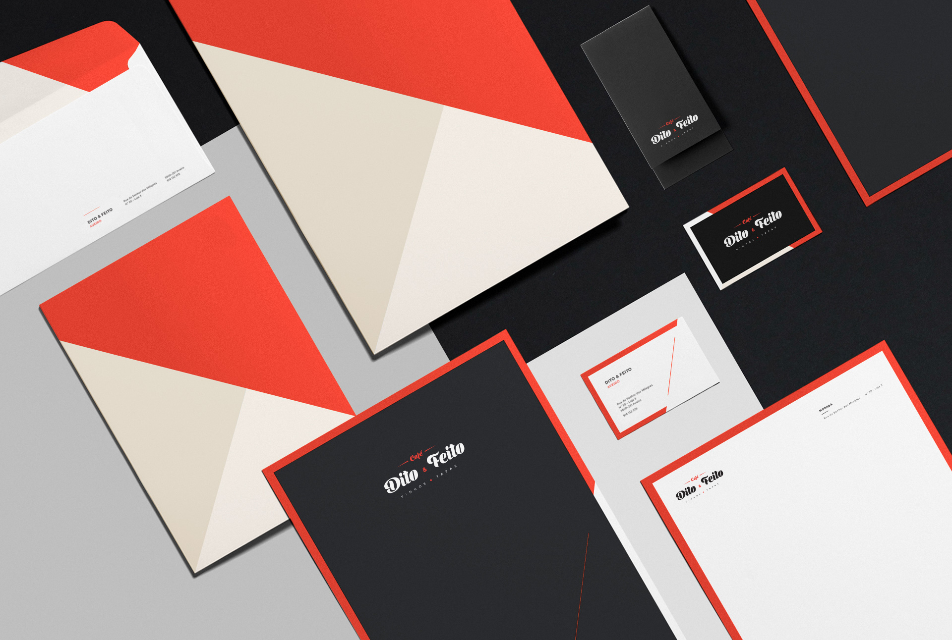 O Café Dito & Feito nasceu em Aveiro com o conceito de “taberna urbana”. Neste espaço podem-se provar os mais variados petiscos tradicionais, bem como uma grande variedade de vinhos Portugueses. Toda a imagem foi desenvolvida de forma a contemplar o seu ambiente de tertúlia, combinando com uma decoração moderna e familiar.