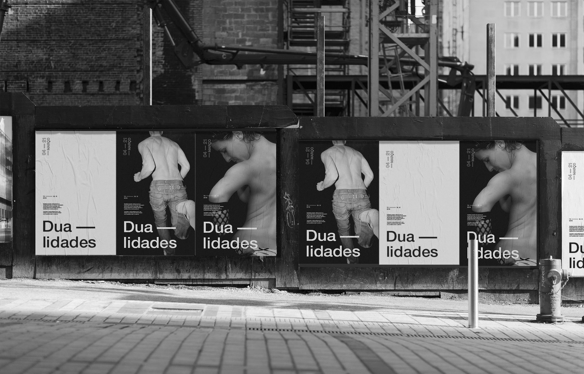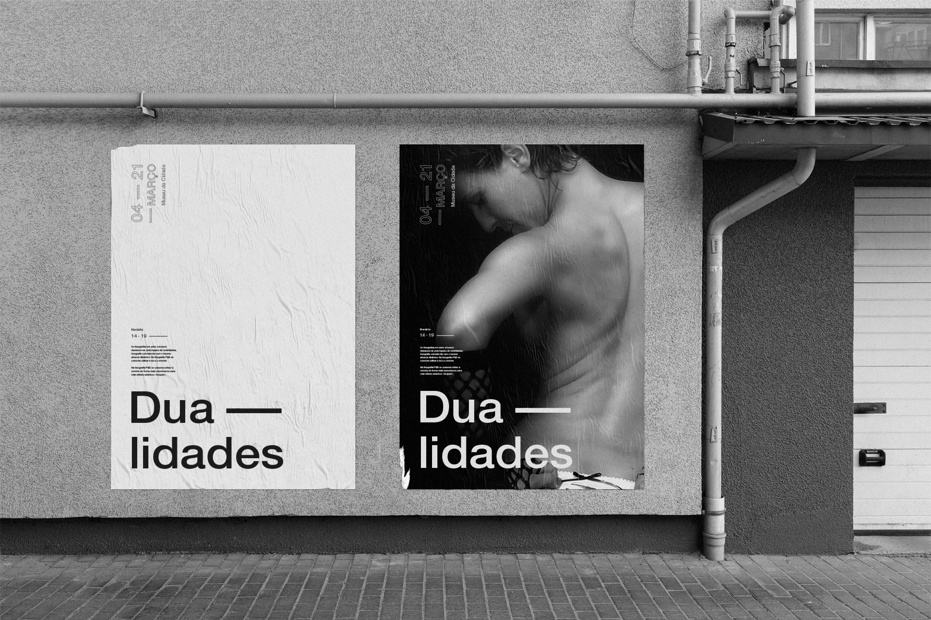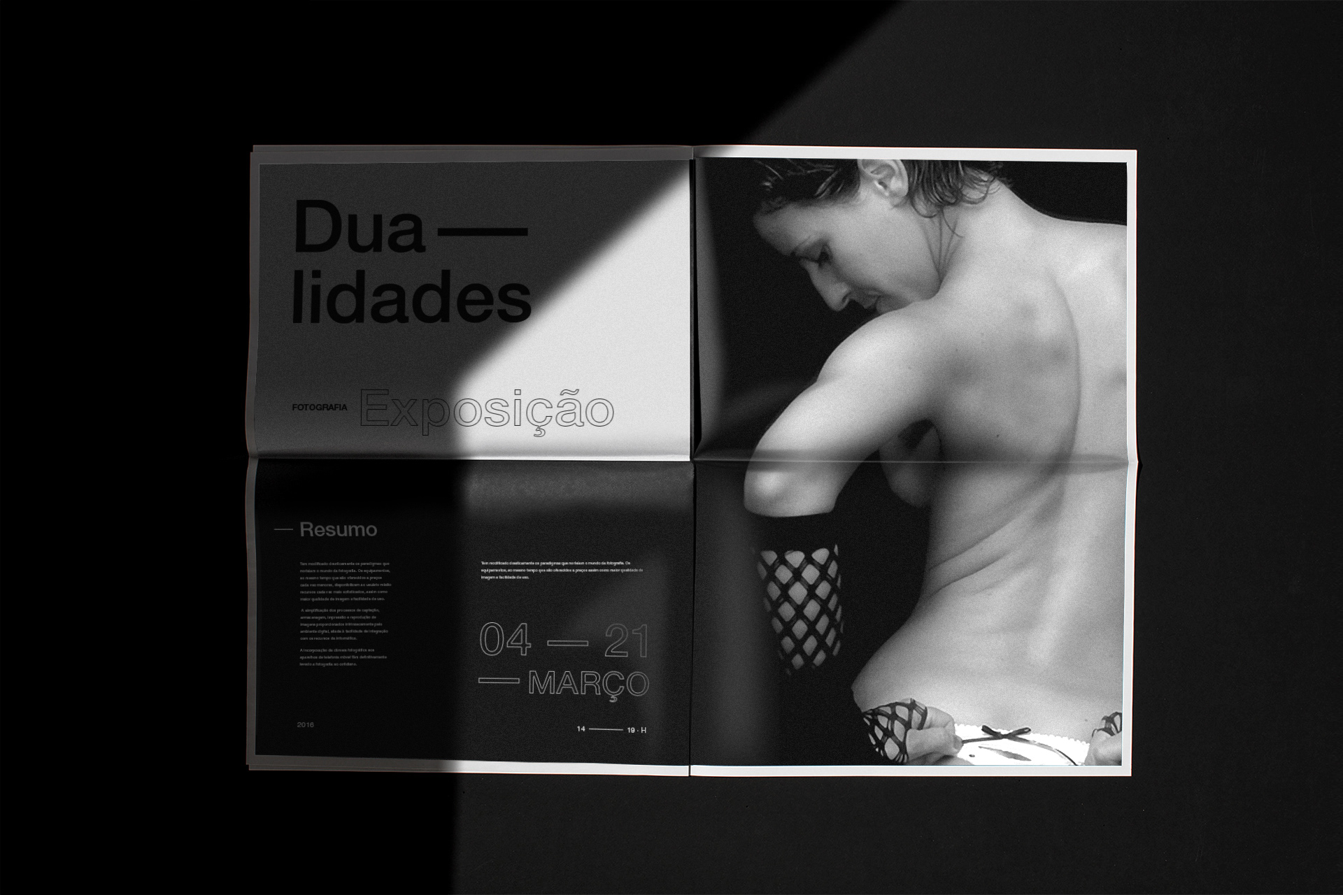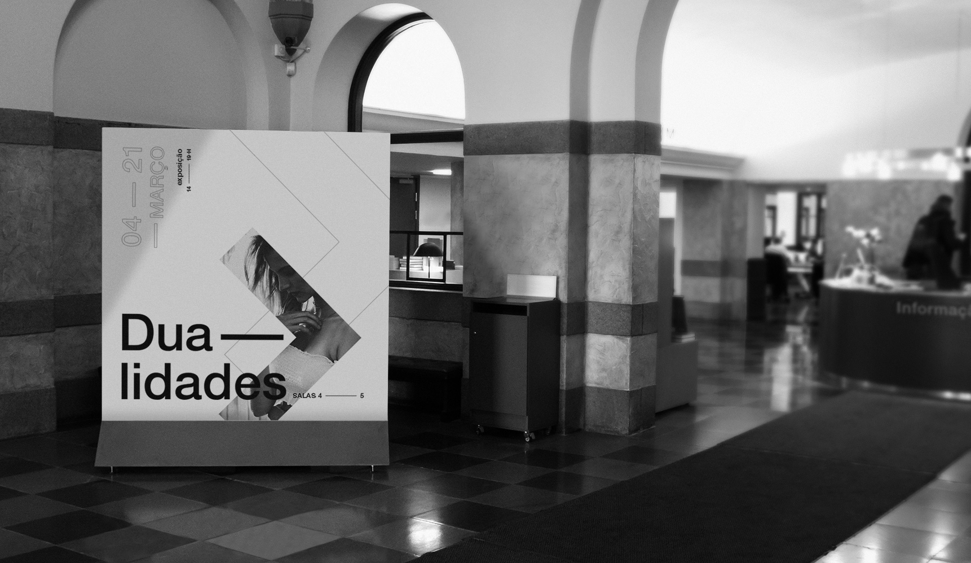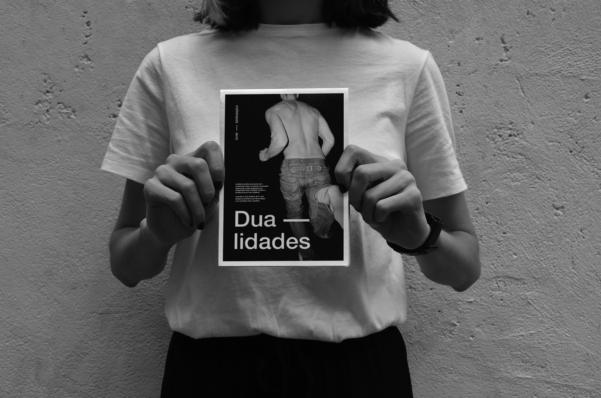 Conjunto de suportes gráficos de comunicação impressos para Exposição Dualidades: Cartazes, Livro de fotografias, resumo da exposição e sinalética.