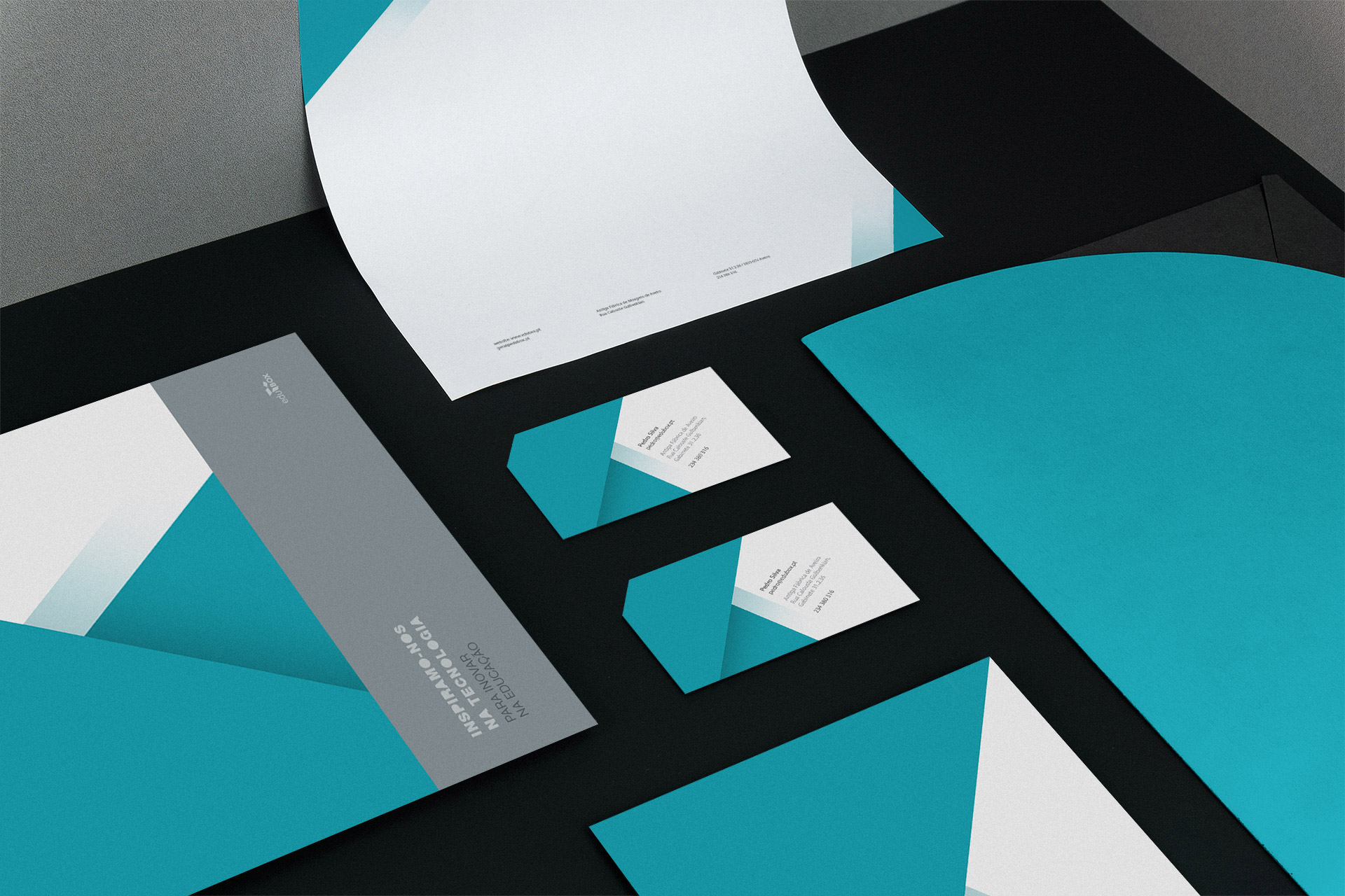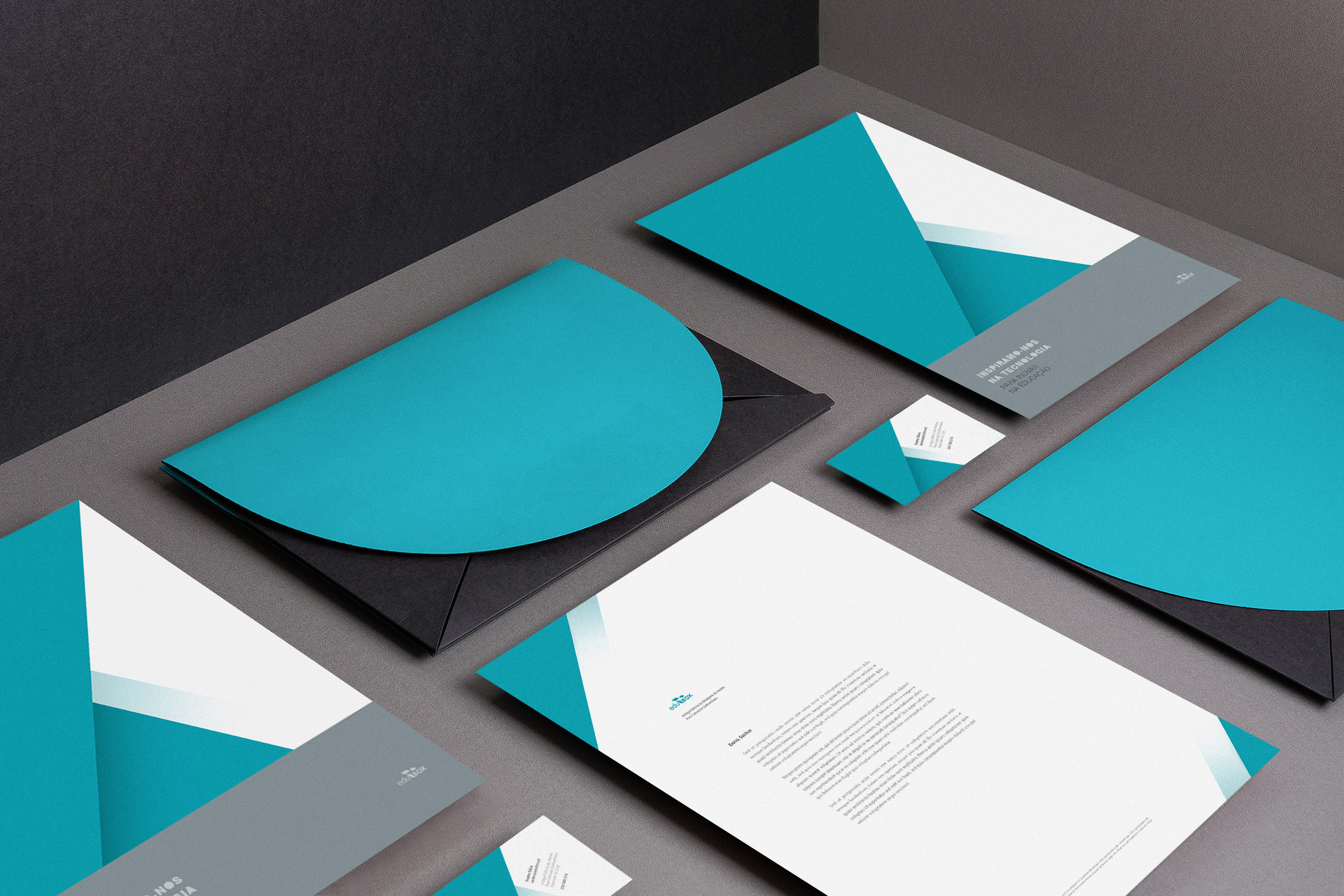 Desenvolvimento gráfico de todos os elementos impressos do economato Edubox. Representação visual que identifica a empresa no mercado, elaborada de forma pragmática e em conformidade com os valores da marca.
