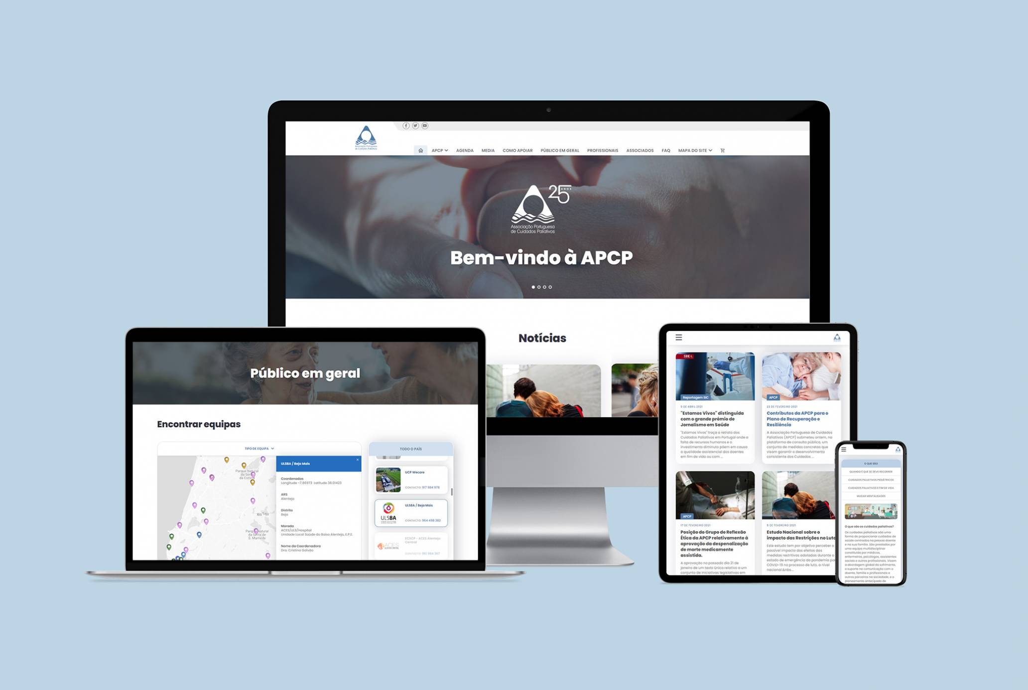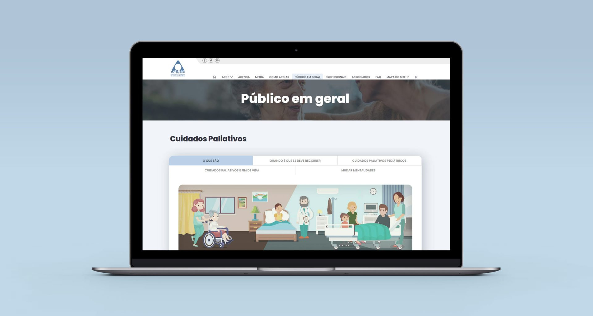 Redesign do website da APCP – Associação Portuguesa de Cuidados Paliativos. Design que pretende tornar a experiência de navegação mais agradável e intuitiva, quer para associados e profissionais da área dos cuidados paliativos, quer para o público em geral e todos os profissionais e não profissionais de saúde que tenham interesse nesta área.