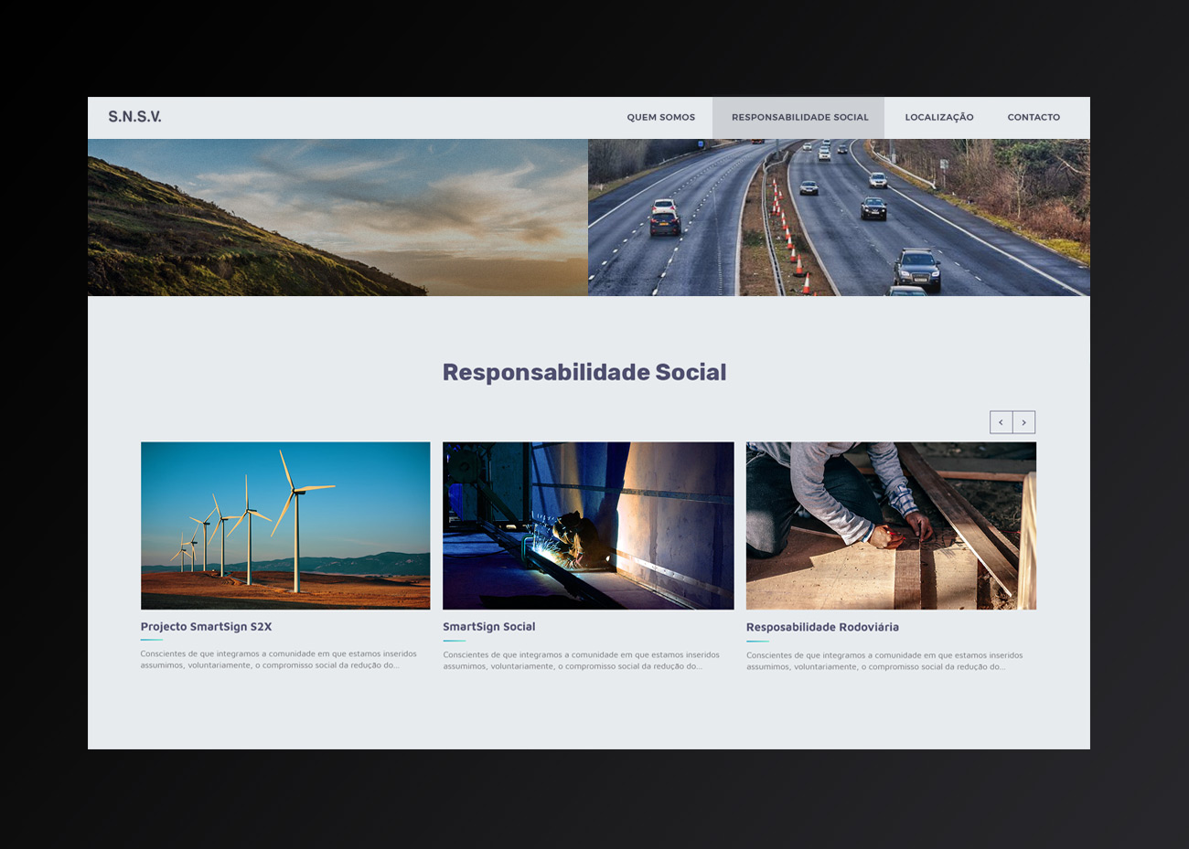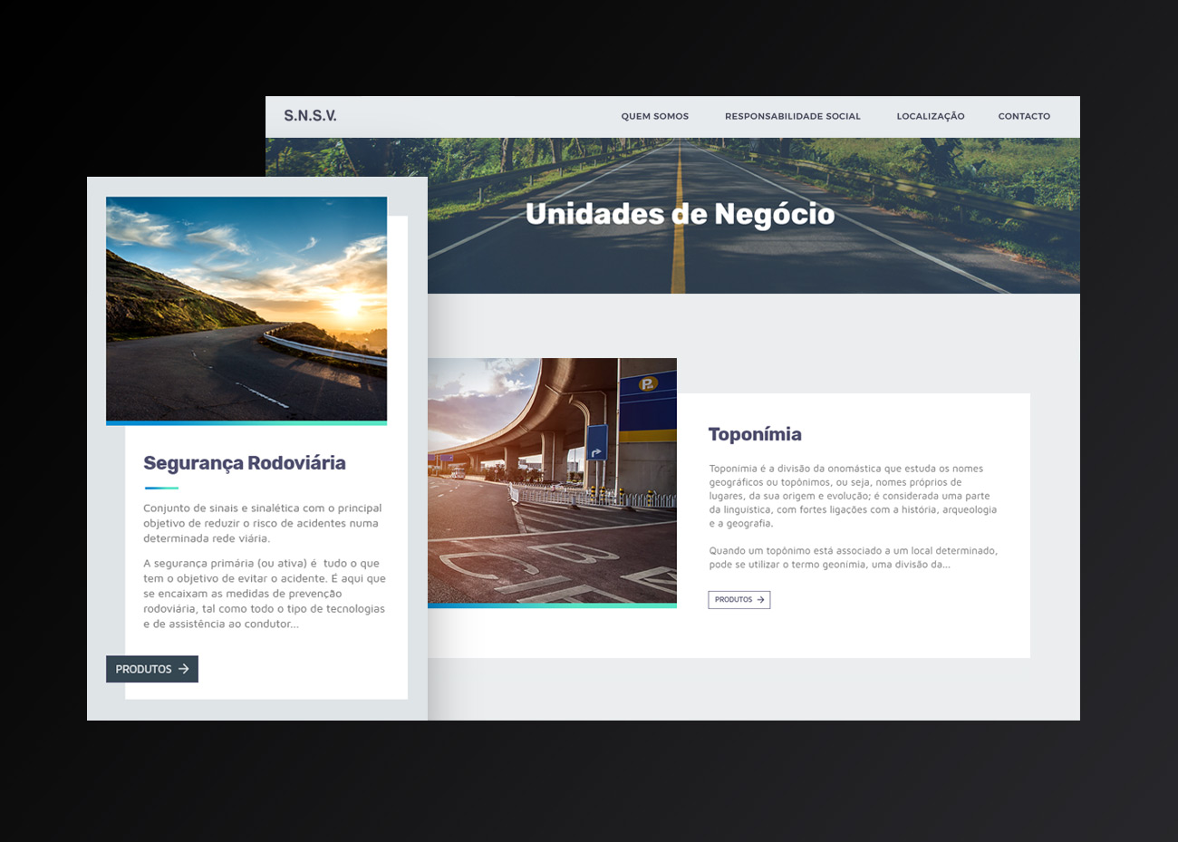 Re-design de website para SNSV – Sociedade Nacional de Sinalização Vertical, empresa que se dedica ao fabrico, comercialização e exportação de artigos de sinalização e execução de obras públicas.