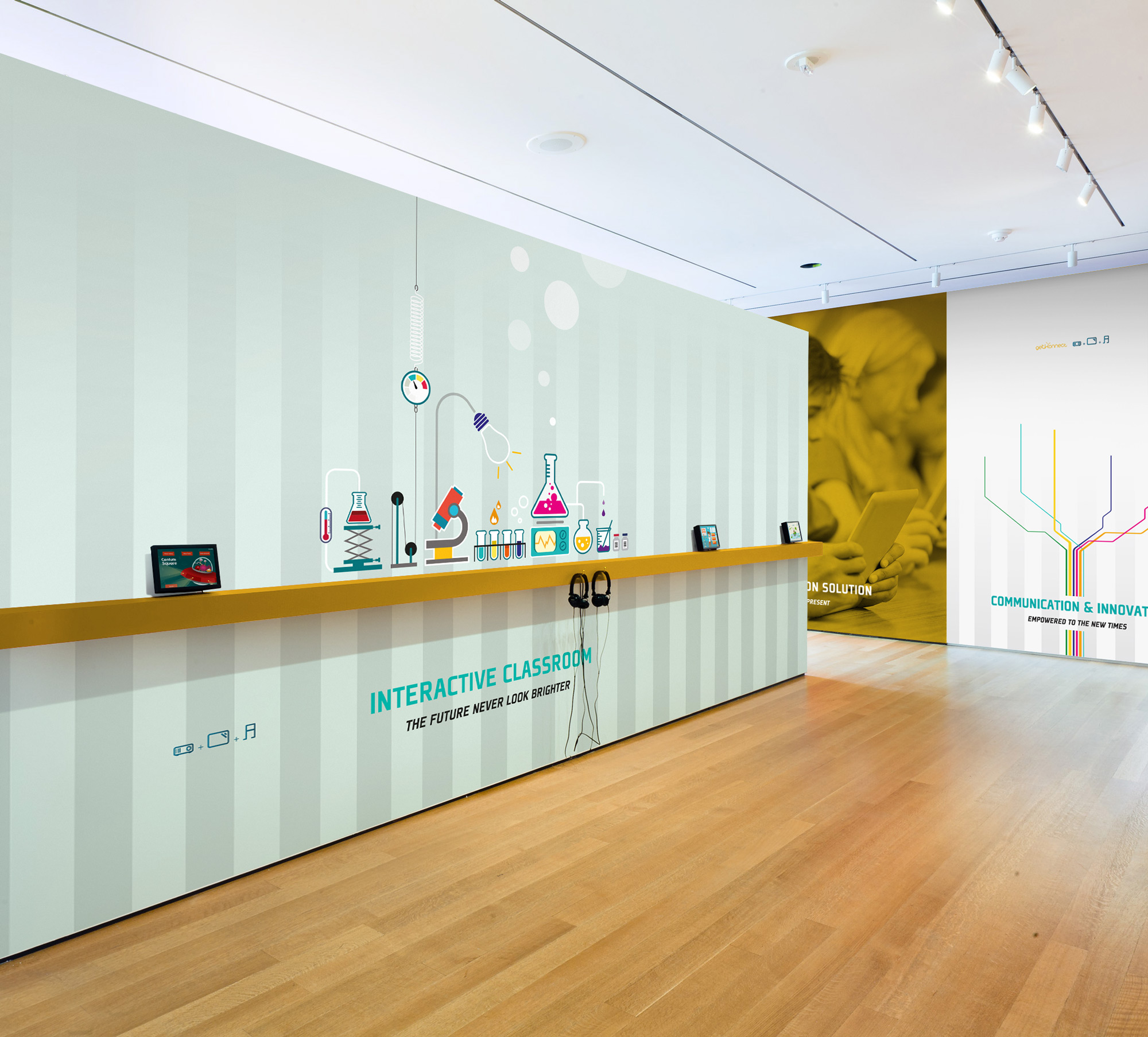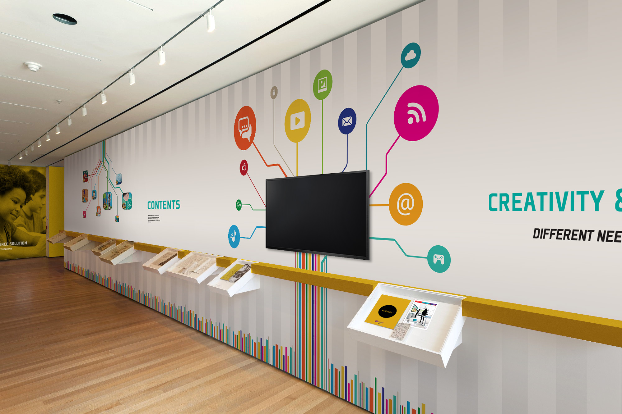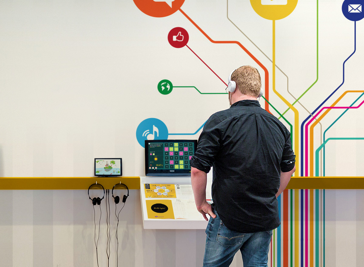 Desenvolvimento de imagem para exposição e stand Bi-Bright para a feira de tecnologias Bett Show 2014, no ExCeL London. Diversos materiais físicos de comunicação e merchandising para entrega no evento.