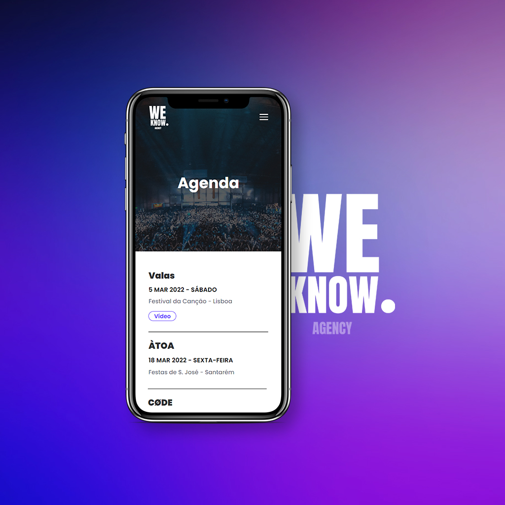 Design e desenvolvimento do novo website para We Know Agency, que se dedica ao agenciamento de Artistas, produção de conteúdos digitais, ativação de marcas e marketing digital. A WKA conta com um portfólio de clientes nas áreas de Restauração, Turismo, Vinhos, Serviços e Baby Brands.